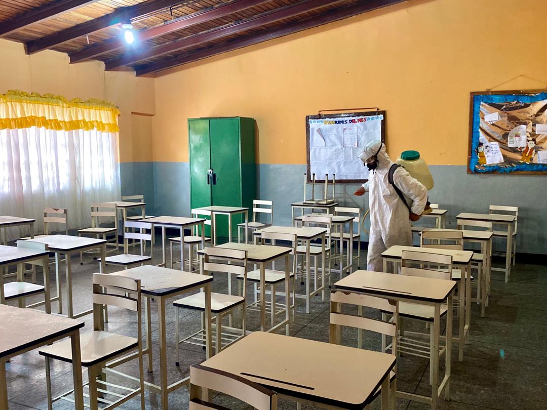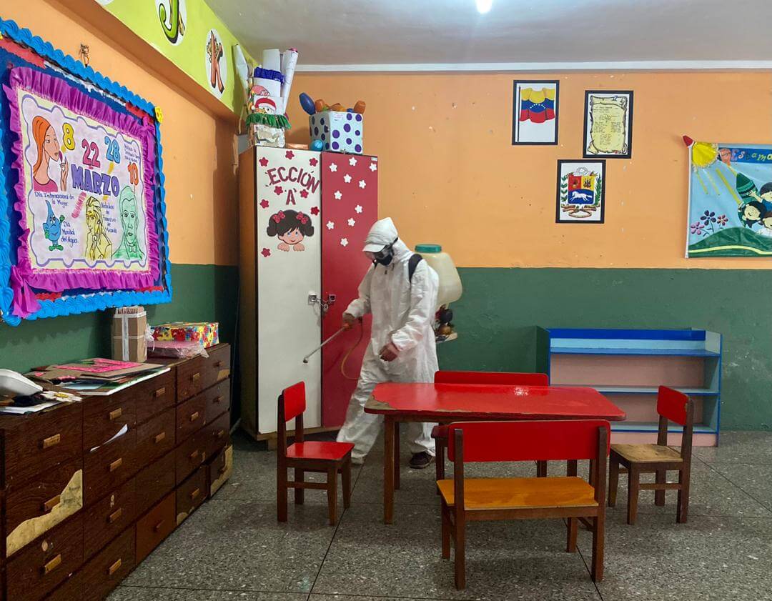 Bereitstellung spezieller Produkte zur Reinigung von verschmutztem Wasser für den Verbrauch, Desinfektion von Oberflächen an Schulen zur Vorbeugung von Covid-19 an verschiedenen Standorten in Venezuela